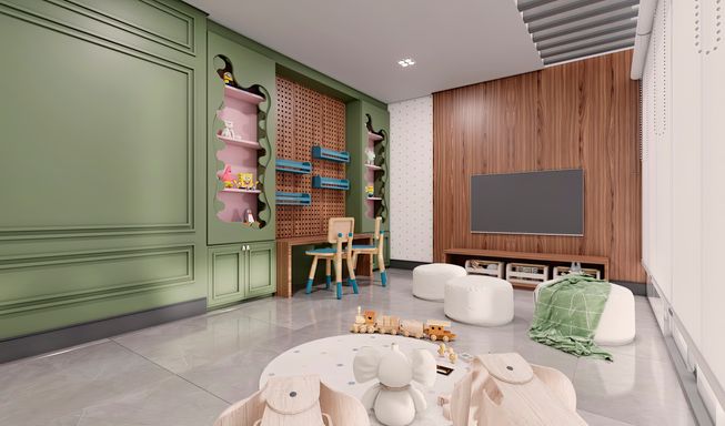 Lazer completo: Piscina climatizada, salão de festas, brinquedoteca, academia, salão de jogos e sauna - entregue mobiliada e decorada sem custo adicional.